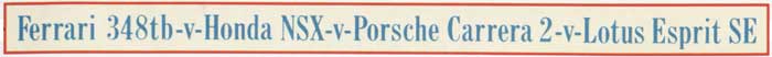 The Ferrari and Honda are the new cars here, but who would dare dismiss the two old-times? The 911 may well be the oldest sports car in the world but, for most of its 26 years, it has been, in my view, the best. And just a year ago it received the most comprehensive revamp in its history. Many new body panels, a brand-new engine (but still a flat-six, still air-cooled), yet all the old-time charm. It's still not bad value, either, at £45,821 (even if, as with all Porsches, it's much cheaper in most other markets).