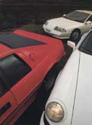 But it's not a difficult car to drive, nor is there a great feeling of occasion when you get behind the wheel. The interior is simply too prosaic for that. The dash is plasticky, and not attractive. The switchgear especially those little rocker switches littered over the dash is cheap, and would be derisive if part of an Escort GL package, let alone that of a £30,000 sports car. Porsche has had 23 years to sort out the ergonomics. The fact that it is still disgraceful suggests an unhealthy indifference to customers' needs. The seats look cheap, do not hold the driver or passenger well in quick motoring, and are not particularly comfortable. The off-set pedals owing to front wheel arch intrusion force a skewed driving position, and the unbelievably ugly plastic centre console looks as though it has been stuck in by some plebeian owner, rather than by Porsche 'craftsmen'. Unlike most pukka sports cars, the 911 does have rear seats which are useful for small children or luggage. The front boot is reasonably large, if shallow. It's the best of the bunch here.