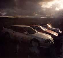 With Castle Combe behind us, and the Porsche opening an all-round advantage, we headed further west, into the setting sun. It was on the winding roads of Exmoor ideal conditions for sports cars that most was revealed. A case can be made for all three cars, on the sinuous A- and B-roads that criss-cross the moors and are generally free from traffic. The Renault is the easiest car to drive fast no mean feat. It feels secure on the road, and is the least nervous of the three when going hard. It's a car that can be driven, at nine-tenths, for long periods. Over a three-or four-hour drive, on tricky roads, it will probably emerge as the fastest simply because it taxes its driver the least. The lightness of the controls, the visibility, the quietness, the comfort there's almost a well-sorted, relaxing sports saloon feel to the GTA in such conditions. Tail wagging is never a problem. High gearing further helps the relaxed, long striding gait of this car.
