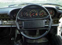 Porsche 911s come alive in these conditions. You can rush towards corners with great speed and rely on those superb brakes to wipe off the unwanted impetus. It's important to be positioned correctly, however, because they are not forgiving cars. As long as the placement is right, you'll be able to get the power down early before the apex of the corner and catapult out of the bend, that glorious flat-six engine growling behind you. The rear Pirelli P7s will grip you rarely get wheelspin in the dry so good is the traction and the 911 is on its way, engine wailing exultantly. But every corner is a challenge when you're driving a 911 hard. Other cars may allow you the luxury of effortless high speed performance, but not this one. As we've said often enough before most recently, in the last month's Top Ten the 911 is a car that involves you with an intimacy that few machines can equal. The steering is never dead: it moves slightly even in the straight-ahead, as the wide P7s roll over the tarmac, and is very sharp when the car's moving at speed. Throttle response is instantaneous: ask of that engine and you will receive; the car will jerk impatiently forward, like a racehorse. Back off and the car baulks.