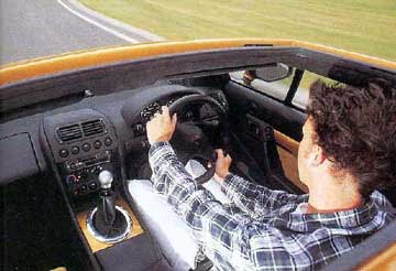 But the controls let the Esprit down. The interface between you and what the car is doing takes your mind off how brilliant it is. The gearbox is knotted up, so you have to concentrate on changing down at each corner, instead of marvelling at those spring rates. The accelerator feels coarse and sticky instead of well-oiled and progressive. The steering is great, but the driving position isn't as relaxed as others here, and that engine, that big V8, is exciting and thrilling and dispatches lesser cars with ease, and yet.... it sounds flat.