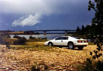 At 120 mph the tiny engine is wound tight and the world beyond the windshield is hurtling by you in a violent blur and the wheel is quivering in your hands and the seat of your pants feels the urgent beat of the tar strips as you rocket over the narrow two-lane at two miles per minute, the engine note climbing, climbing and your view liquefying into a frenzied funnel of road and trees and sunlight and leaves and the flat, fiberglass projectile surrounding you going fast, faster, so fast you actually feel the speed. And then you shift into fifth.
