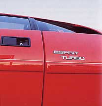 Don't let our giddiness mislead you, however. We are not yet ready to cash in our pensions for an Esprit Turbo. Our test car squeaked and rattled over harsh pavement, the engine displayed a nasty tendency to stall at stoplights, and the rev limiter limited' our fun. We even had trouble getting into and out of the cocoonlike cockpit: Such annoyances do not make for all-out automotive lust.