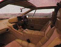 Surprisingly, the Ferrari proves a marked contrast to its mid-engined contemporary. It is still low, compact, close cropped around its driver and passenger but there isn't the enveloping confinement of the Esprit's cabin. Instead the cockpit feels light and airy, and provides a much better degree of all-round vision: the disappearing curves of the front wings chart the front end's position closely and - surprise - there is a reasonable field of vision to the rear and the rear sides.
