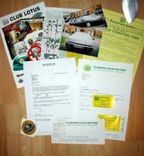 Above left, you can see my bills and receipts of work done. Listing parts, prices and dates. This shows without doubt what has been done and by whom. Some are from Lotus Dealers and some aren't. Keep everything, even quotes for work, this will show how careful you are and will give a positive impression to any buyers.