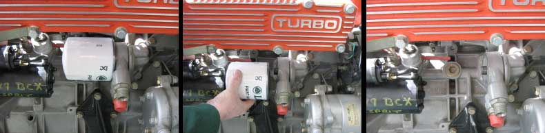 Filter Fitted with Lotus 3M100 Starter, Removing Filter (with 3M100 Starter), Filter space with Lotus 3M100 Fitted.