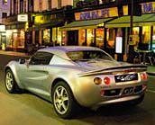 The single greatest contributory factor to the lightness of the Elise is its remarkable chassis. Of a spaceframe tub design, it's constructed of extruded anodised aluminium sections, bonded (glued) together rather than welded. Bonding not only allows far greater dimensional accuracy of the finished chassis, but also the Aluminium sections can be made thinner (therefore lighter) as the Aluminium is not subjected to the strength sapping welding process. The Elise's bare chassis tips the scales at a mere 68kg (150lb), yet has a torsional stiffness of 10133Nm per degree. That figure rises to 11000Nm per degree when the roll hoop and body are fitted to the chassis, a figure comparable to that of a unitary steel-bodied car and quite extraordinary for a roadster. Once Lotus started to make the Elise light, then reducing weight became a self-perpetuating process. With less mass to propel, it's possible fit a smaller, lighter engine and still achieve impressive performance figures. The Elise 111S has an engine of just 1.8 litres, yet can accelerate as quickly as sports cars costing three times as much. Small engines come with small, light gearboxes. And a small engine is also an economical engine, which meant Lotus engineers could reduce the size, and therefore the weight, of the fuel tank while maintaining a respectable touring range. Less weight to move along also means less weight which requires stopping. Which is why the Elise is able to do without a brake servo on the cross-drilled ventilated discs - thatŸs more weight saved. Similarly, such a light car does not require power assistance for it's steering, shaving off still more kilograms Handling considerations also strip more weight from the car. Having a low unsprung mass is the goal of all chassis engineers, the Elise benefits from extruded aluminium suspension uprights, monotube dampers (lighter than the twin-tube variety), and at the front, aluminium brake callipers. A standard Elise weighs in at a mere 699kg (dry) and the Elise 111S at 714kg (dry). That the Elise is widely acknowledged as the best sports car in the world today, categorically proves the value of saving weight. The