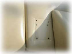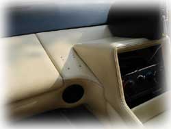 Leather Problem The previous owner ("PO") told me the PO had installed the mobile phone holder that was in the car when I bought it. On removing it, I knew it wasn't going to be a pretty sight. Six holes in the leather! I've hidden it with an Air freshener over the past two years. Now its time to do something about it. I've been told that replacing the leather will be difficult for two reasons. Firstly it will be difficult to colour match. Secondly the dash will need removing to replace the section. This has been quoted at 10 hours labour (at £65 an hour). Not really an option. I've come up with two options. Firstly I can get a plastic plate made up with covered with leather and embroidered with a logo and fixed to the facia with invisible plastic rivets. Secondly I've thought about adding a Speedo there for the passenger. This will cover the holes (with one big hole) and give the passenger something to think about. If you can think of someway of covering/replacing this problem or have any views on my two options, please feel free to air your views at kato@lotusespritworld.com Good ideas so far... 1.