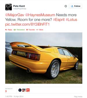 For a car that's not been in production of 10 years, it still have a present on tweeter, which didn't exist in the public relm back when you could buy a new model from Lotus. Here's latest we've seen.