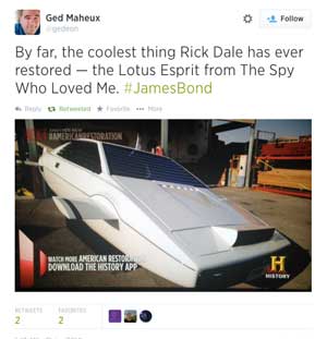USA TV - American Restoration to feature Bond's Lotus Esprit